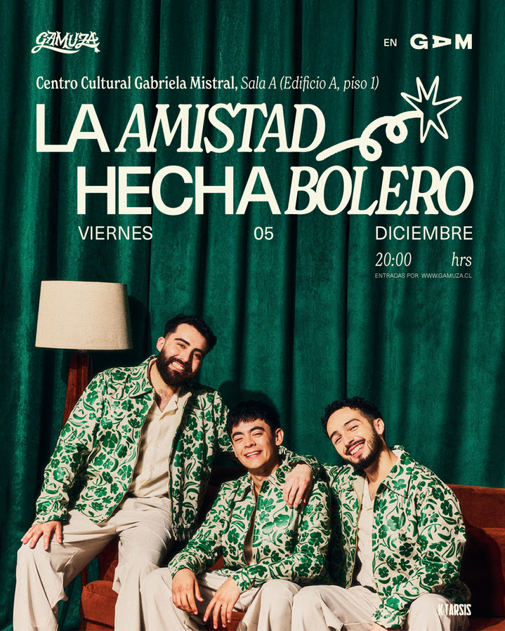 La nueva revelación del bolero nacional, Gamuza, presentará su último trabajo La Amistad Hecha Bolero (2025) el 5 de diciembre en el Centro Cultural Gabriela Mistral (GAM), sala A1. (entradas mediante el sistema TicketPlus).