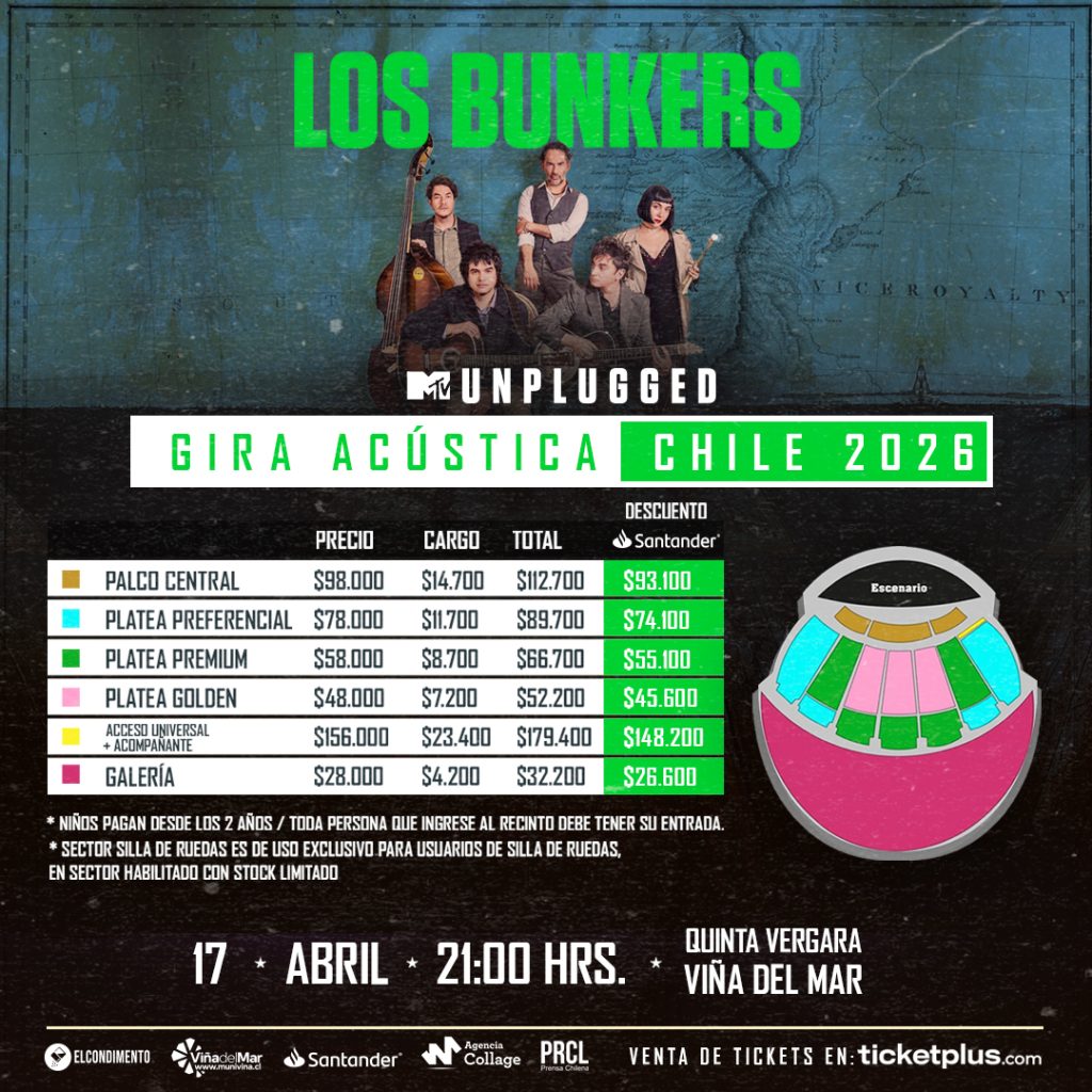 El show acústico de la aclamada Gira Acústica 2025 MTV UNPLUGGED aterrizará en la Quinta Vergara de Viña del Mar el próximo viernes 17 de abril a las 21:00 horas. Será un espectáculo inolvidable y en formato íntimo que permitirá a los fanáticos disfrutar de la profunda conexión de la banda con sus composiciones.