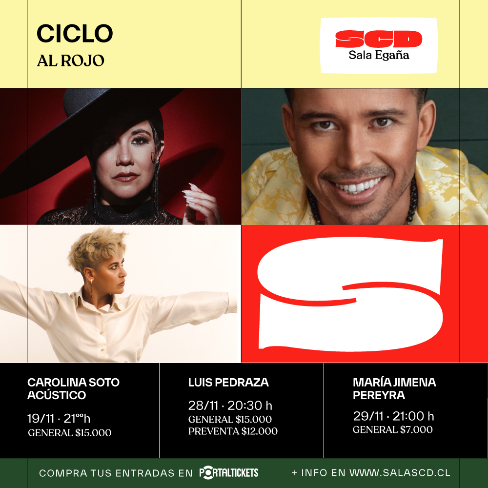 María Jimena Pereyra, Carolina Soto y Luis Pedraza serán los protagonistas de “Al Rojo”, una serie de shows íntimos que tendrá lugar en Sala SCD Egaña.
